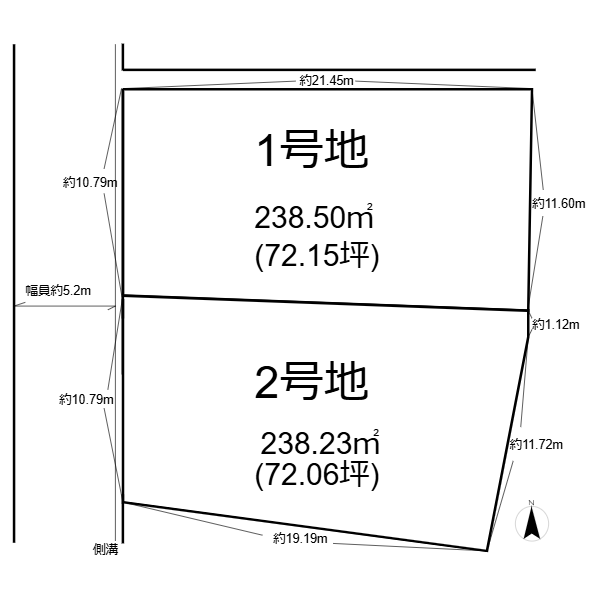 • 全2区画/更地/約70坪(1号地238.50㎡、2号地238.23㎡)
