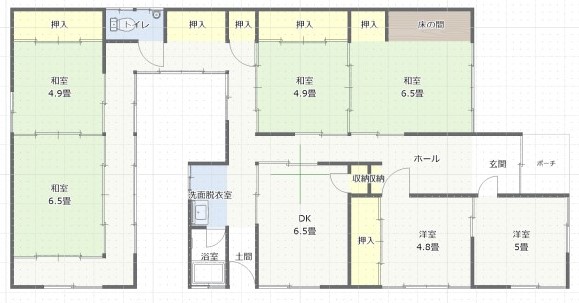 6DKで床面積が約122㎡(約37坪)という広いお家でしたので、ご要望については無理なく取り入れられそうです。ですが工事費用を抑えるため、柱や壁の位置を大きく変えない方向でしたので、各部屋をどのように割り振るかがポイントでした。